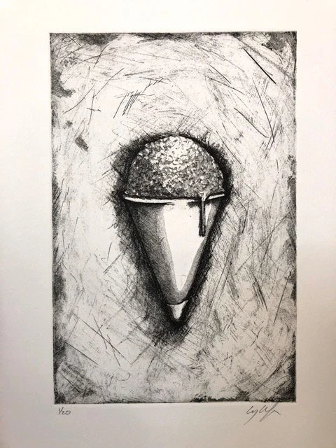 "Snow Cone" 2023, Intaglio on BFK Rives White, Paper Size 15" x 11", Image Size 9" x 6"